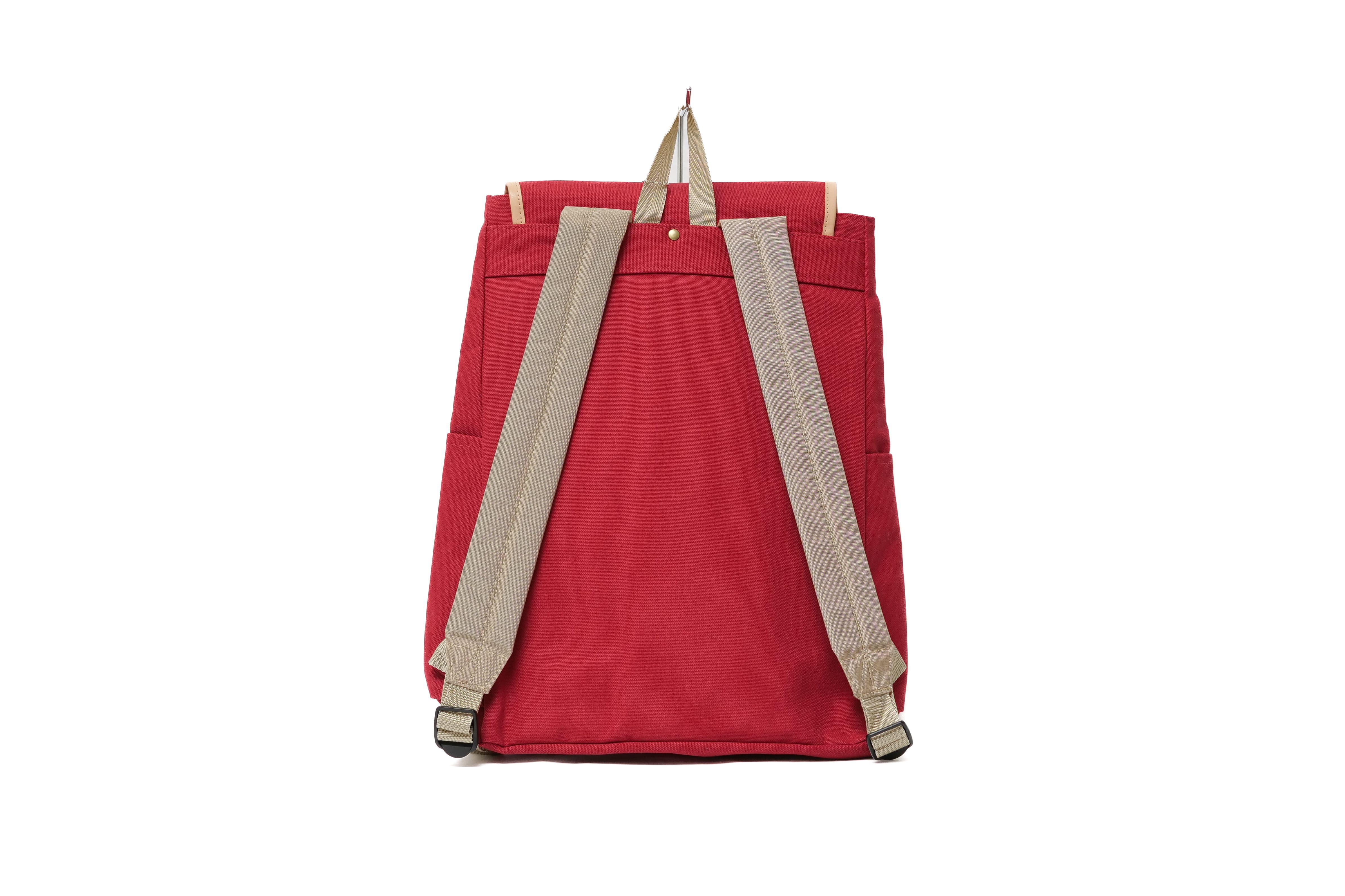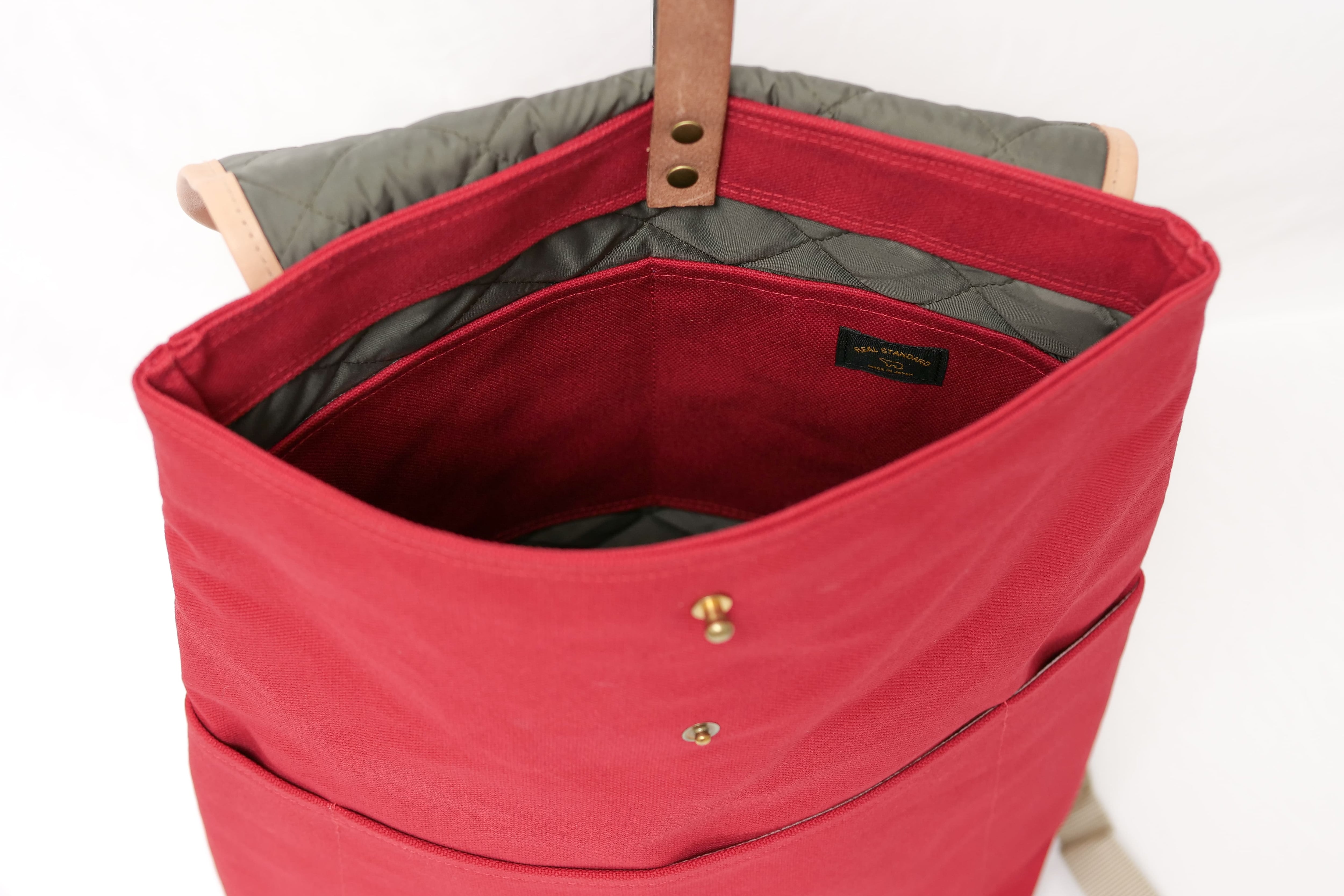 BRESS BACKPACKは滋賀県の高島帆布を使用しています。染糊付弱撥水加工が施された8号帆布です。ギボシのベルトには栃木レザーを使用し、ライナーにはオリジナルナイロンキルトを採用しているので軽くて普段使いしやすいのが特徴です。